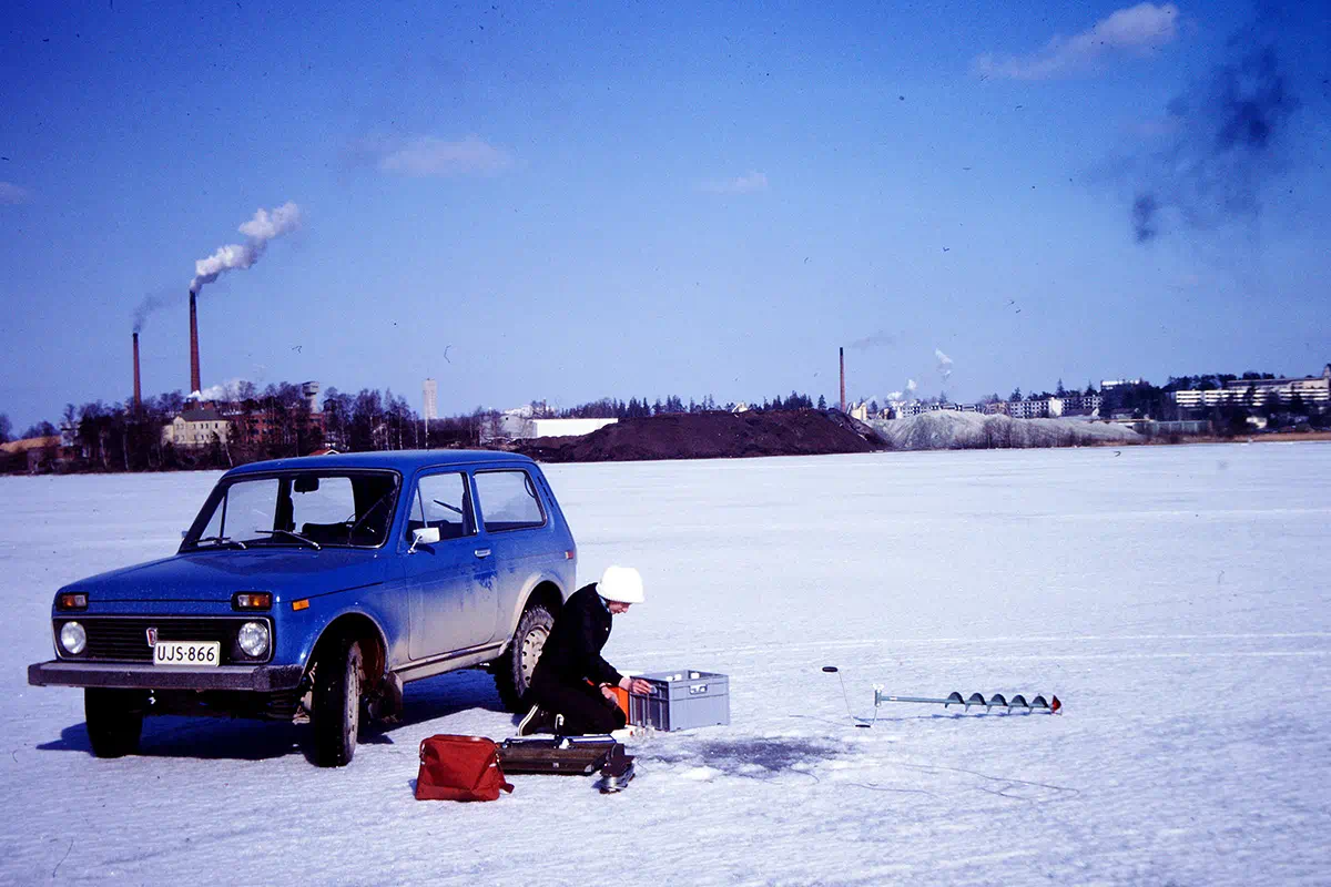 Näytteenottoa Lohjanjärvellä 1980-luvulla. (LUVY / arkistokuva)